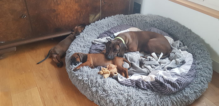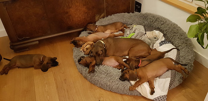 Welpen im Körbchen mit Mama Frieda - BGS Hunde vom Fischbach in Lauchheim Welpen im Körbchen mit Mama Frieda - BGS Hunde vom Fischbach in Lauchheim Welpen beim Spaziergang Welpen beim Spaziergang Welpen im Körbchen Welpen beim Spaziergang Welpen im Gras